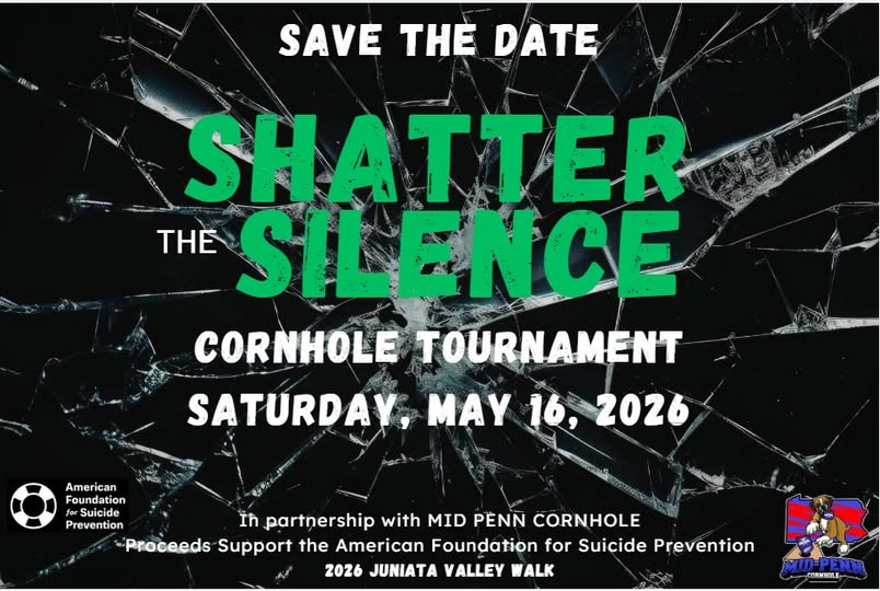 The Shatter the Silence Benefit Cornhole Tournament is happening Saturday, May 16th from 11AM to 4PM at the Mifflin County Youth Park. Come out for a fun-filled day of friendly competition with cornhole, plus plenty of chances to win with raffles, rip tickets, and a 50/50 drawing.